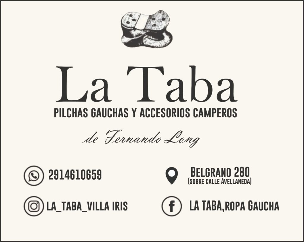La Taba – Pilchas Gauchas y Accesorios Camperos ***ENVÍOS A BAHÍA BLANCA SIN CARGO*** Indumentaria y calzado de trabajo👷♂️ Ropa masculina | Campo… Belgrano 280 - Villa Iris WhatsApp Llamar Instagram Facebook Ver Más Detalles